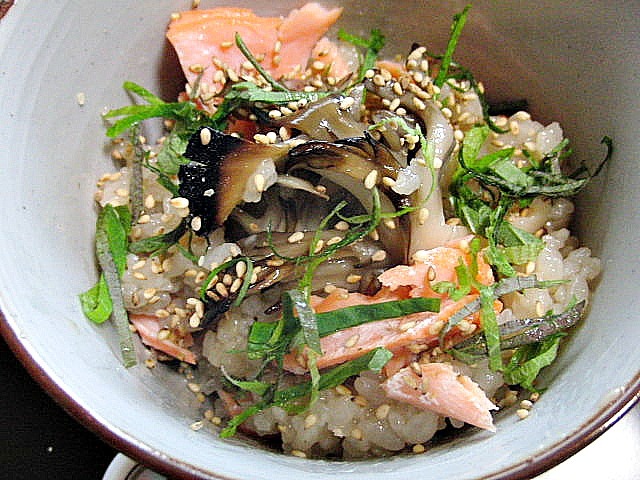 で待ち切れずすぐにおにぎりにして、頂き物の大好物ちりめん山椒をのっけて食べました