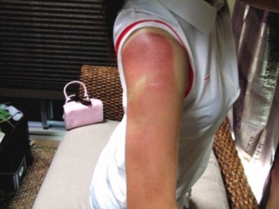腕の前の部分が一部、日焼けして無いのは